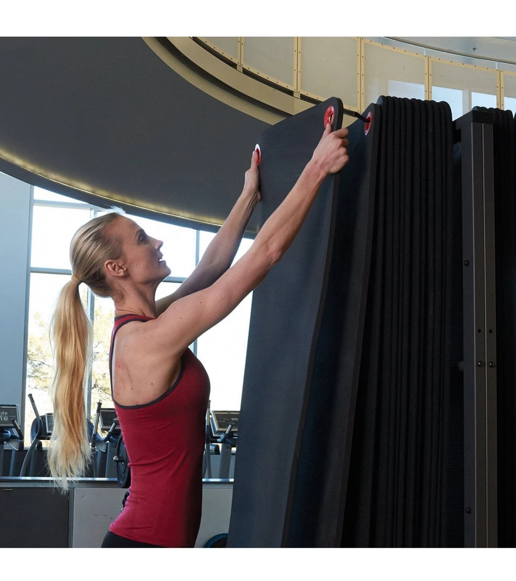 The SPRI® 71in Premium Hanging Mat (3/8″) is designed to save-space by hanging. These dense, high-quality, closed-cell foam mats that are light yet resilient, perfect for low-impact exercise, core training, and stretching. This mat can maintain its shape and stay flat on the floor whether you hang, stack or roll them after use. Reinforced plastic grommets won’t harm floors, rust, and won’t bend or deform when stepped on.Â